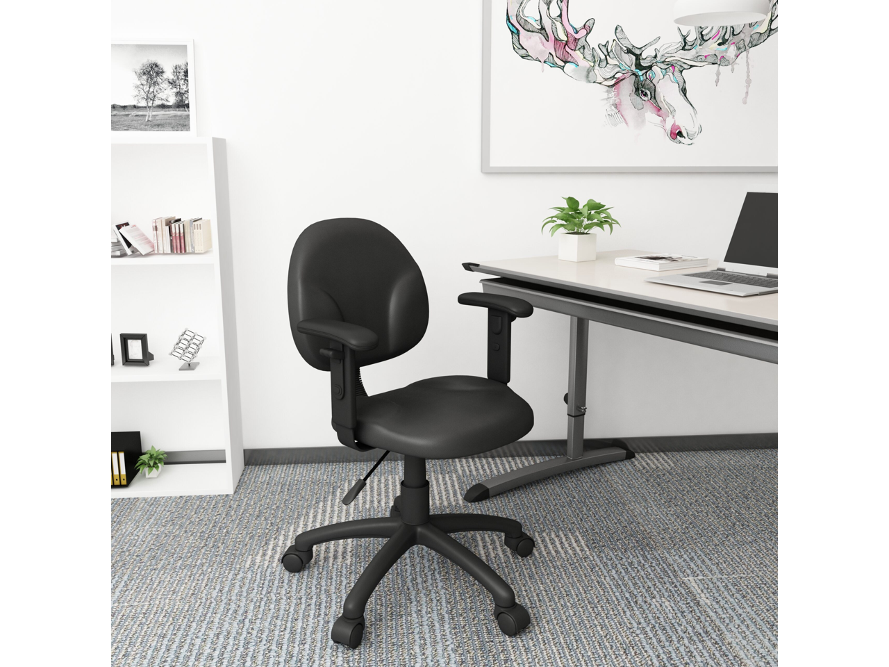 BOSS Diamond Task Chair In Black Antimicrobial Vinyl W/ Adjustable Arms (B9091-CS)