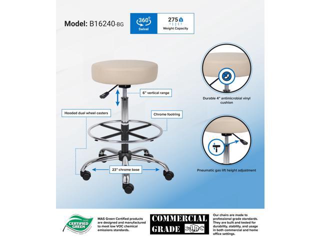 - This medical stool is upholstered in durable Beige, easy to clean antimicrobial vinyl, and equipped with a 4” thick molded foam seat that provides improved durability