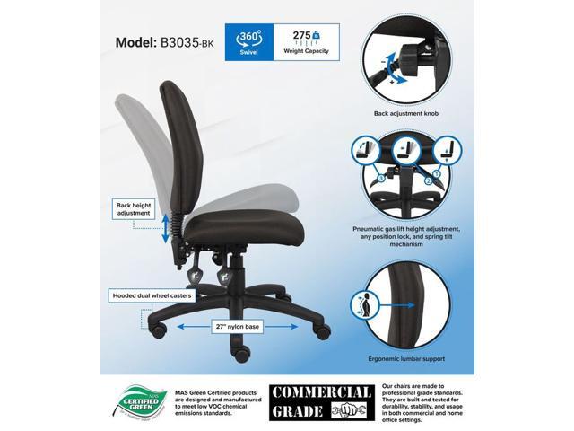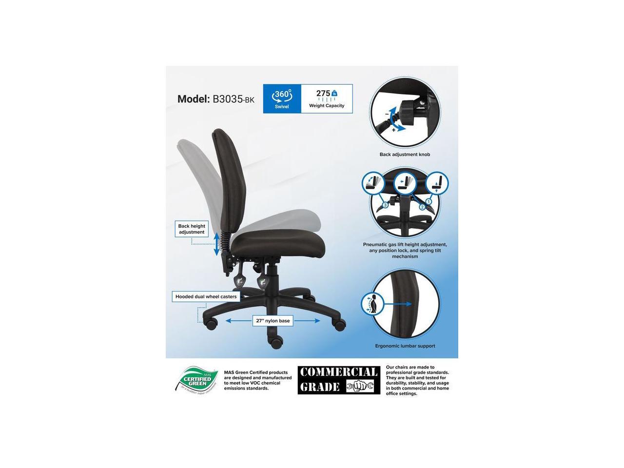Boss B3035BK Multi-Function Fabric Task Chair Without Arms