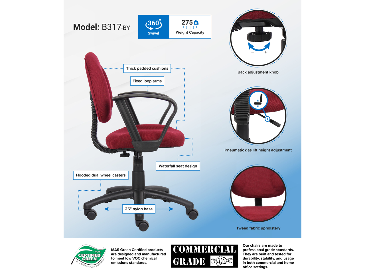 BOSS Burgundy Perfect Posture Deluxe Office Task Chair with Loop Arms (B317-BY)
