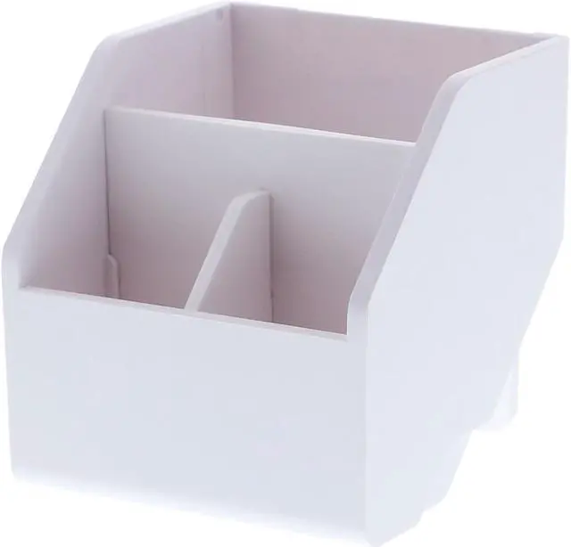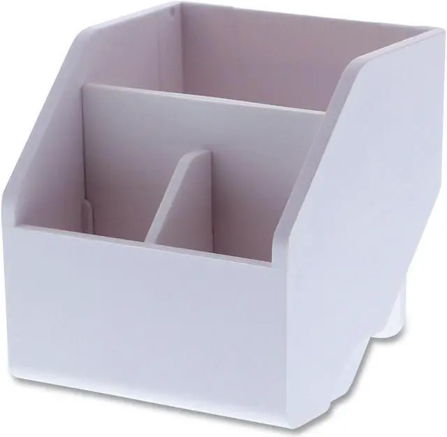 With a compact design that saves desk space, this storage bin is ideal for holding all your small office and personal items. It comes with a removable lid to conceal clutter. Use the two removable dividers to customize the bins compartments. Its also stackable to help you optimize storage space. Short Storage Bin. Number of Compartments: 1; Material Family: Plastic; Material(s): Plastic; Width: 3.4".