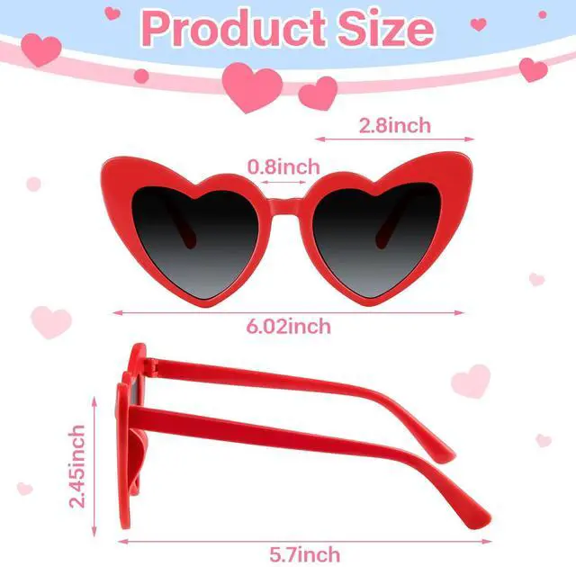 Package includes: You will get 6 pieces of red heart sunglasses, sufficient quantity to meet your different needs, we also have more colors and quantities for you to choose, you can use it as a Christmas gift, Valentine's Day gift or party gift Give it to friends, lovers, etc