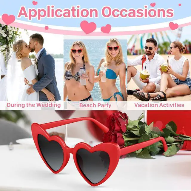 Usage: Our red heart glasses are a cute accessory for weddings, beach parties, birthday parties, pool trips and other festive occasions. They are also suitable for daily wear and photography, cycling, driving and other outdoor activities