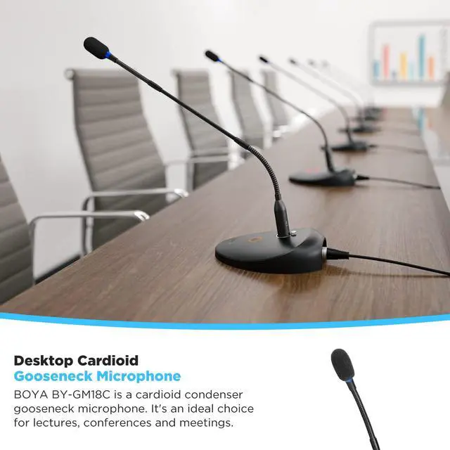 BOYA BY-GM18C Cardioid Condenser Gooseneck Microphone is tailored for speech, lectures, video conferences, meetings and more.