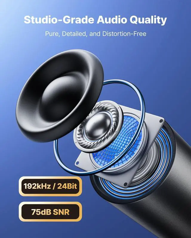 Studio-Quality 192kHz / 24-Bit Audio: The desktop microphone's Integrated professional sound card delivers high-resolution recording and clear, natural voice capture for streaming, podcasting, online teaching and conferencing.
