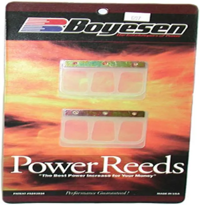 Boyesen Power Reeds use a patented dual-stage fiberglass design for more airflow, more air velocity and more overall power. This item fits the following applications: 2006 Yamaha YFS200 Blaster, 2005 Yamaha YFS200 Blaster, 2004 Yamaha YFS200 Blaster, 2003 Yamaha YFS200 Blaster, 2002 Yamaha YFS200 Blaster, 2001 Yamaha YFS200 Blaster, 2000 Yamaha YFS200 Blaster, 1999 Yamaha YFS200 Blaster, 1998 Yamaha YFS200 Blaster, 1997 Yamaha YFS200 Blaster, 1996 Yamaha YFS200 Blaster, 1995 Yamaha YFS200 Blaster, 1994 Yamaha YFS200 Blaster, 1993 Yamaha YFS200 Blaster, 1992 Yamaha YZ80, 1992 Yamaha YFS200 Blaster, 1991 Yamaha YZ80, 1991 Yamaha YFS200 Blaster, 1990 Yamaha YZ80, 1990 Yamaha YFS200 Blaster, 1989 Yamaha YFS200 Blaster, 1988 Yamaha YFS200 Blaster, 1987 Kawasaki KX80, 1986 Kawasaki KX80.