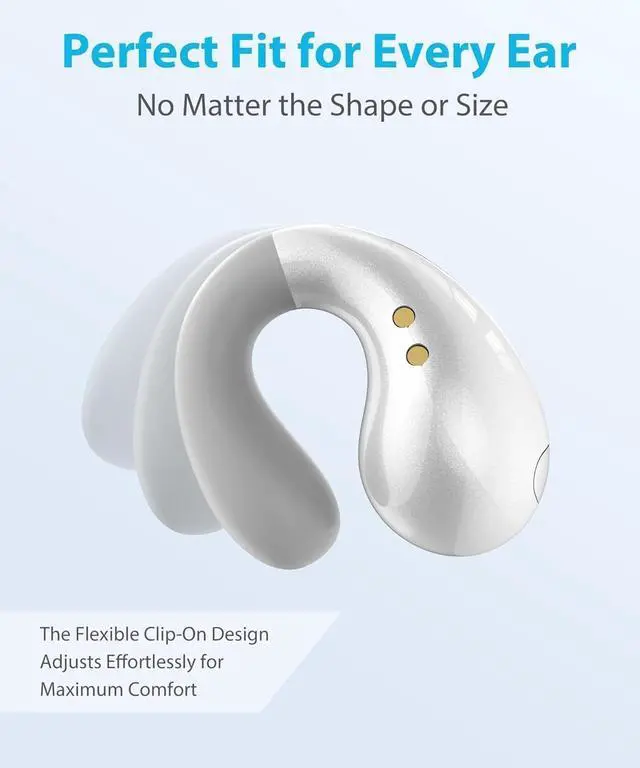, Built with a small ergonomic clip structure, these clip on earbuds rest gently over the ear instead of inside it. The lightweight buds stay secure during movement while allowing airflow. Unlike traditional in-ear ear buds, this open design supports long-term wear and natural conversation, making these earbuds suitable for work, walking, and everyday activity