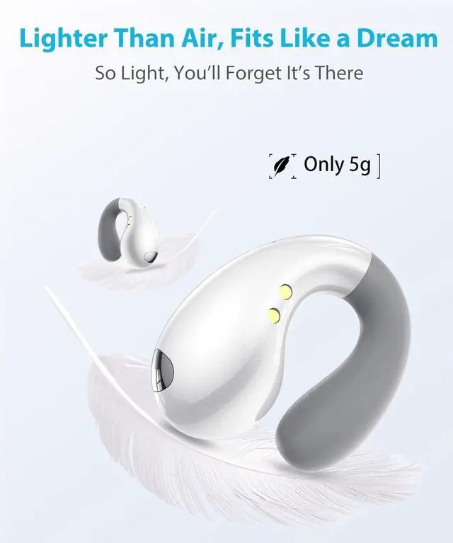 Ultra Open Ear Earbuds - Ergonomic Clip-On Earbuds, Bone Conduction Over-The-Ear Headphones with Waterproof Design and Secure Fit for Small Ears, Snow White