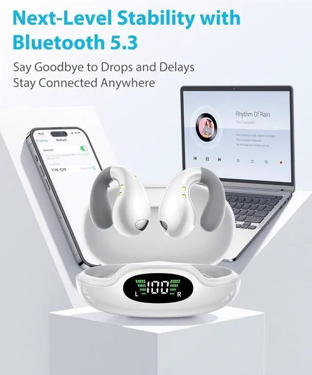 & Powered by a 16.3mm driver, these bone conduction earbuds are tuned to prioritize voice clarity rather than isolation. Using advanced bone conduction, sound is delivered efficiently while keeping ambient awareness. Ideal for calls, navigation, and podcasts, these headphones support hands-free communication during daily movement without blocking surrounding sound