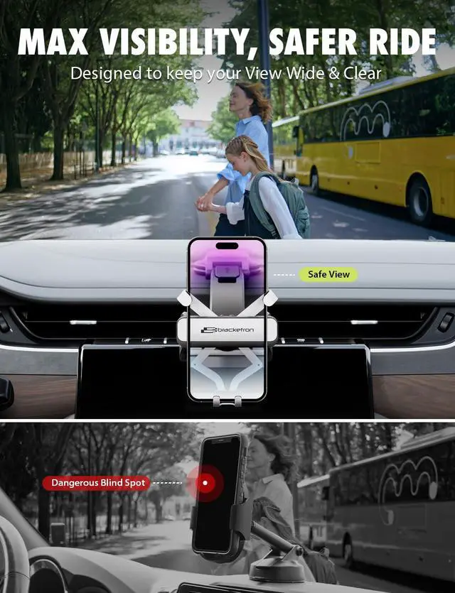 As a professional-grade cell phone holder car solution, it features a revolutionary low-profile mounting arm that keeps your phone secure while preserving your clear view of the road, making it ideal for navigation and hands-free calls.