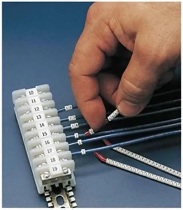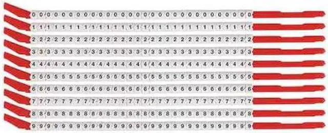 Wire Marker Wand, Preprinted, Legend 0 to 9, Color Black on White, Material Nylon, Temp. Range -30 Degrees to 251 Degrees F, Label Width 0.13 in, Label Height Varies within book, Marker Attachment Style Split Sleeve, No. of Labels 300, Label Material Nylon, Background Color White, Legend Color Black, Uses Dispenser Wand, Fits Wire Dia. 0.11 in to 0.13 in, Package Quantity 10. This item has been restricted from sale in the following state (s): []
