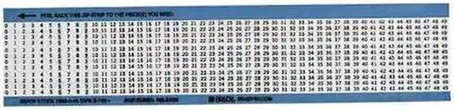 Wire Marker, Preprinted, Legend Numbers 0 to 49, Color Black on White, Markers per Card 150, Material Glossy Vinyl Coated Polyester B702, Temp. Range 212 Degrees F, Label Width 0.25 in, Label Height 1.5 in, Marker Attachment Style Self-Adhesive, No. of Labels 3, 750, Label Material Vinyl Coated Polyester, Background Color White, Legend Color Black, Standards RoHS Directive compliant to 2005/618/EC MCV, Package Quantity 25. This item has been restricted from sale in the following state (s): []