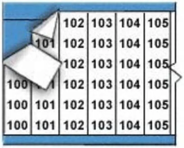 Wire Marker, Preprinted, Legend 100 to 124, Color Black on White, Markers per Card 25, Material Vinyl Cloth B500, Temp. Range 175 Degrees F, Label Width 0.25 in, Label Height 1.5 in, Marker Attachment Style Repositional Self-Adhesive, No. of Labels 625, Label Material Vinyl Cloth, Background Color White, Legend Color Black, Standards RoHS Directive compliant to 2005/618/EC MCV, Package Quantity 25. This item has been restricted from sale in the following state (s): []