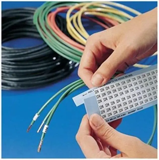Wire Marker, Preprinted, Legend 34 to 66, Color Black on White, Markers per Card 33, Material Vinyl Cloth B500, Temp. Range 175 Degrees F, Label Width 0.25 in, Label Height 1.5 in, Marker Attachment Style Repositional Self-Adhesive, No. of Labels 825, Label Material Vinyl Cloth, Background Color White, Legend Color Black, Standards RoHS Directive compliant to 2005/618/EC MCV, Package Quantity 25. This item has been restricted from sale in the following state (s): []