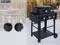 Heavy duty steel and high temperature enameled outer shell provide years of performance. Grill easily removes from cart to allow for Tailgating, Picnics, Campouts and Beach events. Heavy Cast Iron cooking grids for outstanding heat distribution. Precise hood mounted temperature gauge. Large removable warming rack. 3 Stainless steel burners for fast heat up and individual cooking zones. Enameled flame tamers and firebox prevent rust and corrosion. Easy remove drip tray for fast, simple clean up. Sturdy side foldable prep tables. Six (6) tool hooks. Large wheels for easy mobility.