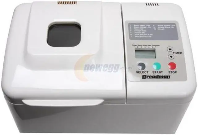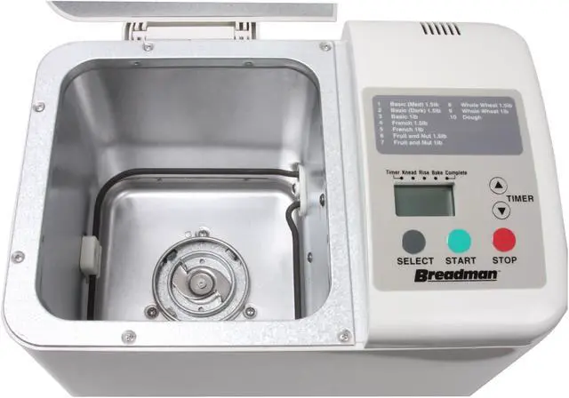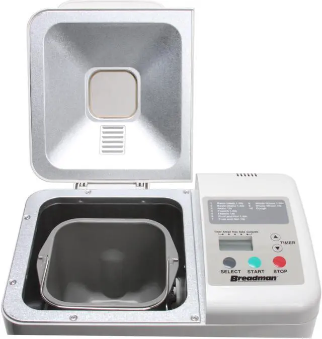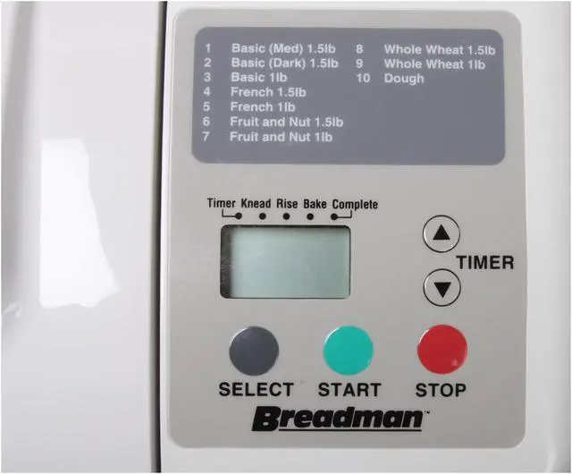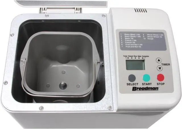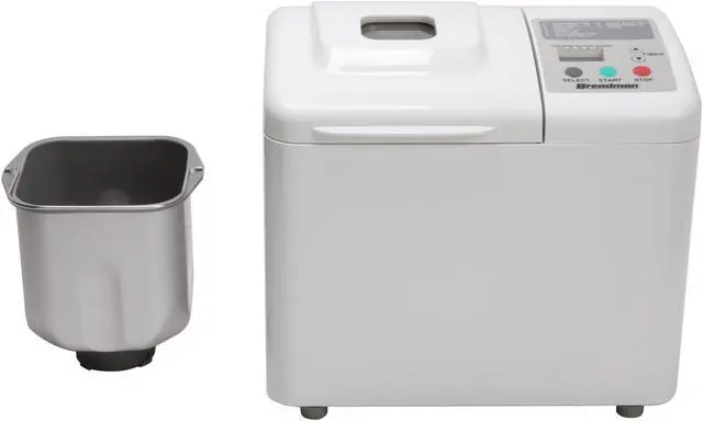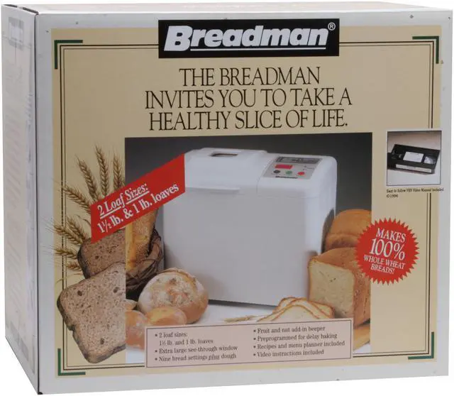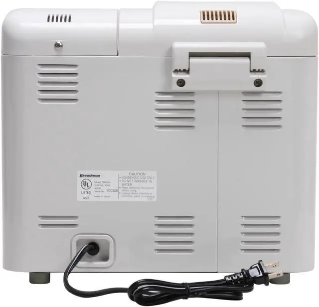 | Features | Non-stick Bread Pan Removable non-stick Kneading Paddle Preprogrammable Timer Oven has a 2.38" x 2.38" window Made in Japan Cool-Down Cycle If bread is not removed immediately after Baking cycle, the Breadman will cool down at a controlled rate to help reduce sweating of loaf in Bread Pan. |