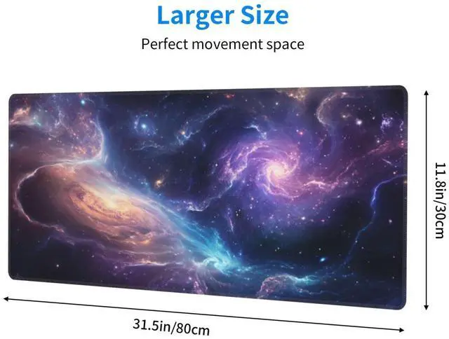 KEHIPI Gaming Mouse Pad Desk Pad,Extended Big Mouse Pad,31.5x11.8 Inch Long Computer Keyboard Mouse Mat Mousepad with 3mm Non-Slip Base and Stitched Edge for Gaming and Office (Nebula)