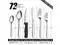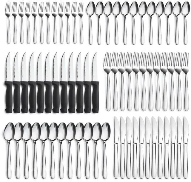 The 72 piece silverware set is ideal for 12 persons, which includes dinner forks, salad forks, dinner knife, steak knife, dinner spoons and tea spoons