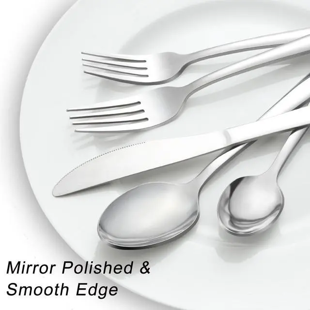 The kitchen forks spoons knives sets have highly polished makes the flatware set looks shiny and smooth edges that will not hurt your mouth while you using it, giving you a good experience.
