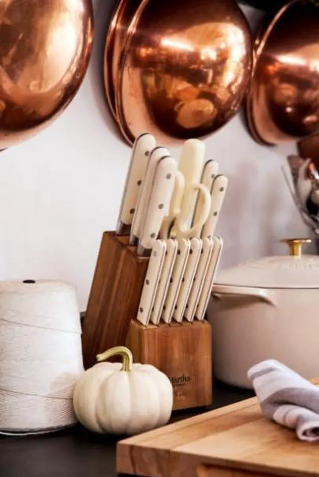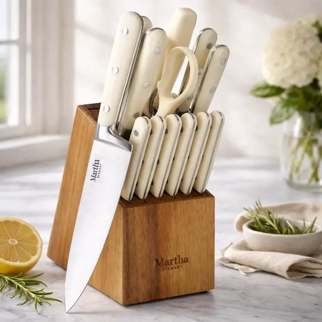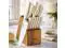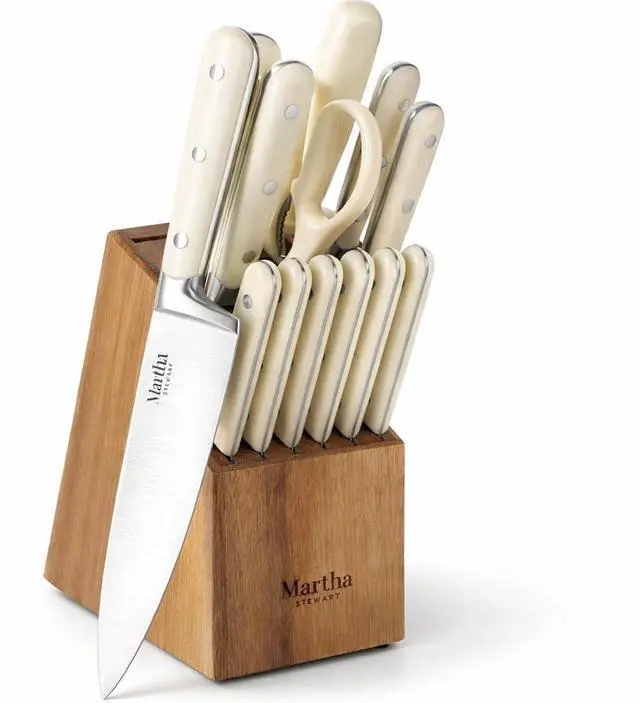 | Included Components | One 8-inch chefs knife, one 7-inch santoku knife, one 8-inch bread knife, one 5-inch utility knife, one 3.5-inch paring knife, six 4.5-inch steak knives, one pair of kitchen shears, one sharpening steel, and one acacia wood block |