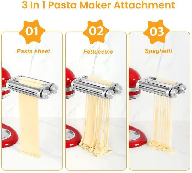 Focus on our highlights: Our Pasta Maker Attachment 3 in 1 Set included Pasta Sheet Roller, Spaghetti Cutter, Fettuccine CutterWe use 2 pcs Solid knob with Exquisite lines which control the roller and cutter separately. The small details are just to provide you with a better experience. Regarding the word FavorKit, one of the meaning of favor is help, our original intention is to provide you with a little help in your kitchen. Go a little deeper wish, We hope that all people who use our products can experience happiness from the process.