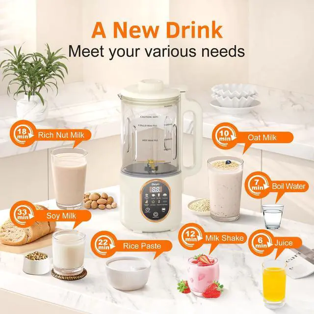 -- Go beyond basic milk. From almond and soy milk to fresh juices, hot soups, and baby food, this machine does it all. The 12-hour delay start and keep-warm function ensure your favorite drinks are ready exactly when you want them.