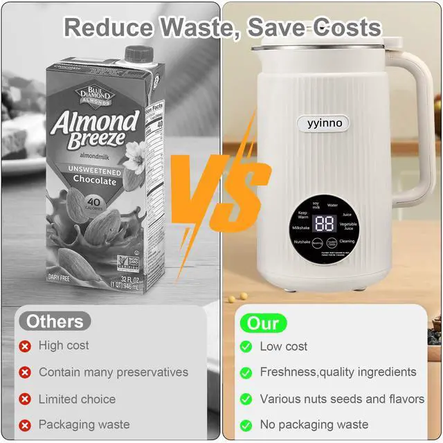 40oz Large Capacity & Powerful Blending Makes 4 servings of smooth, pulp-free almond milk, oat milk, soy milk, or cashew milk in 1 cycle. 800W motor + 12 stainless steel blades crush nuts/beans effortlessly.