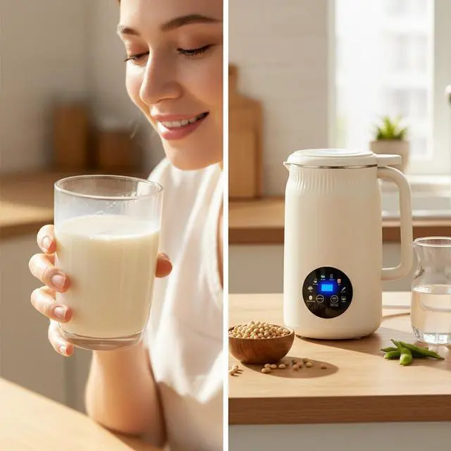 1.2L Soy Milk Maker & Nut Milk Maker Make fresh, plant-based milks and more effortlessly at home. Discover the ultimate kitchen companion for healthy, homemade beverages and meals. This powerful 1.2L (cold drink)/1L (heating) soy milk maker blends, heats, and cleans automatically, perfect for busy families of 4-5. Craft creamy soy, almond, oat milk or nourishing rice porridge, corn juice, and fruit/veggie blends with one-touch touchscreen operation.