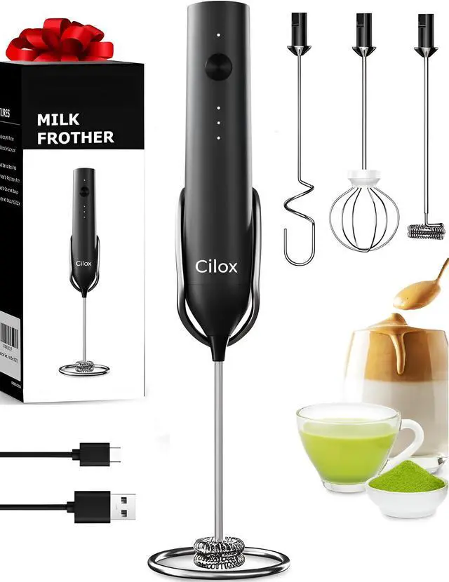 Rechargeable Milk Frother Handheld with 3 Whisk and Stand, 3 Speed Frother Wand Mixer, Dual Spring Whisk Coffee Frother for Matcha, Lattes, Cappuccino, Frappe Drink, Hot Chocolate