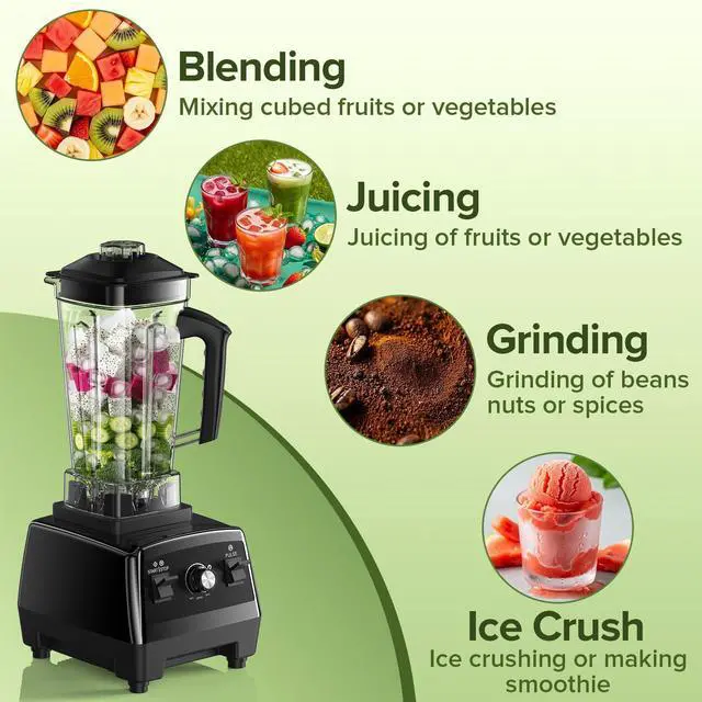 Versatile All-in-One: This professional blender creates silky-smooth beverages, desserts, ice cream, soups, sauces, baby food, and even grinds coffee beans and spices achieving multiple functions with one appliance.