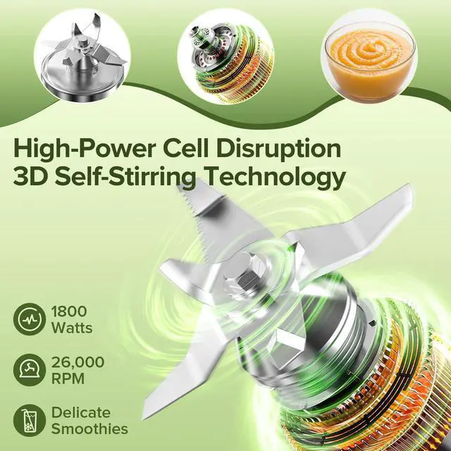 Powerful & Efficient Blender: Equipped with a high-performance 1800-watt motor reaching up to 26,000 RPM, it instantly pulverizes tough ingredients like ice cubes or nuts.