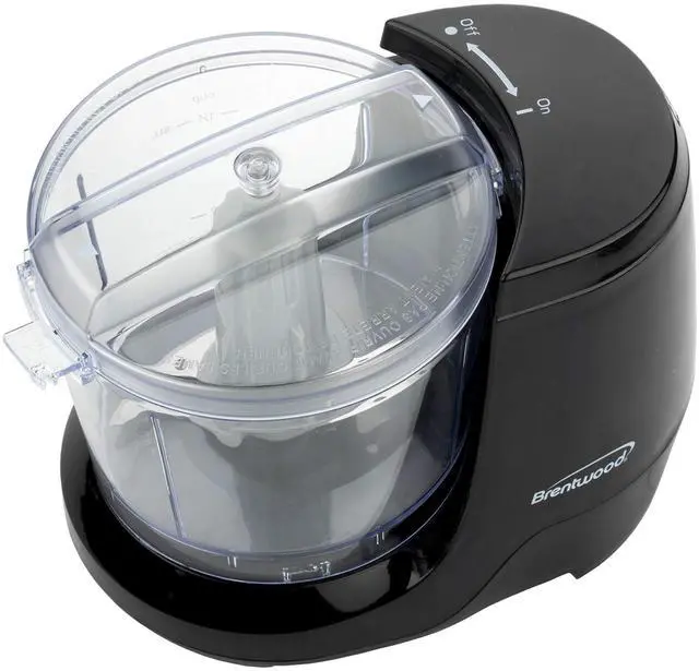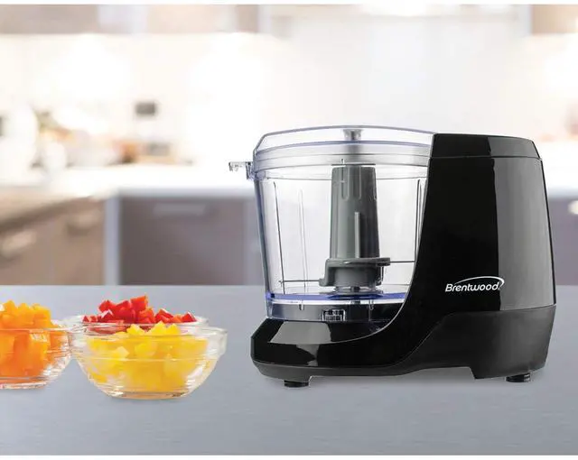The powerful Brentwood appliances MC-109BK 1-1/2 cup mini food chopper saves you time and energy in the kitchen. With its safe and simple operation, it's ideal for prepping dips, salsas, veggies, spices, and more. This Black food chopper is BPA-free and has easy to clean removable parts.