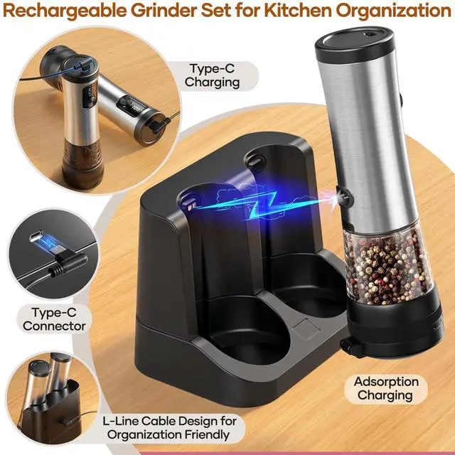 - Powerful & Efficient Grinding – Equipped with a high-speed motor for fast, smooth, and consistent grinding of sea salt, black pepper, spices, herbs, nuts, coffee beans, and more!