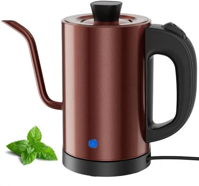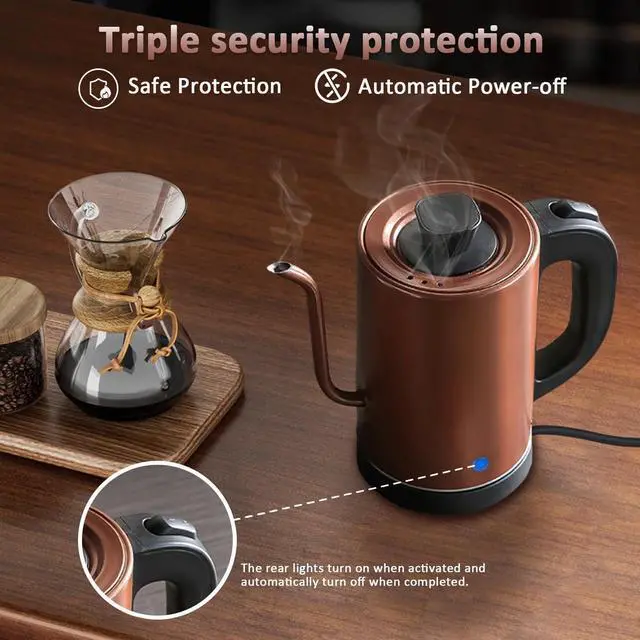 Gooseneck Electric Kettle 0.8L, 304 Stainless Steel (BPA-Free), 600W Fast Heating, Compact Copper Design with One-Touch Button & Auto Shut-Off, Perfect for Home, Office & Coffee/Tea Lovers