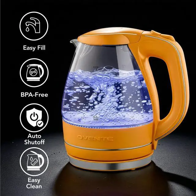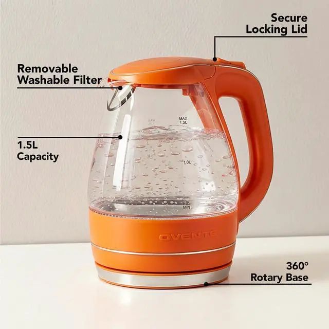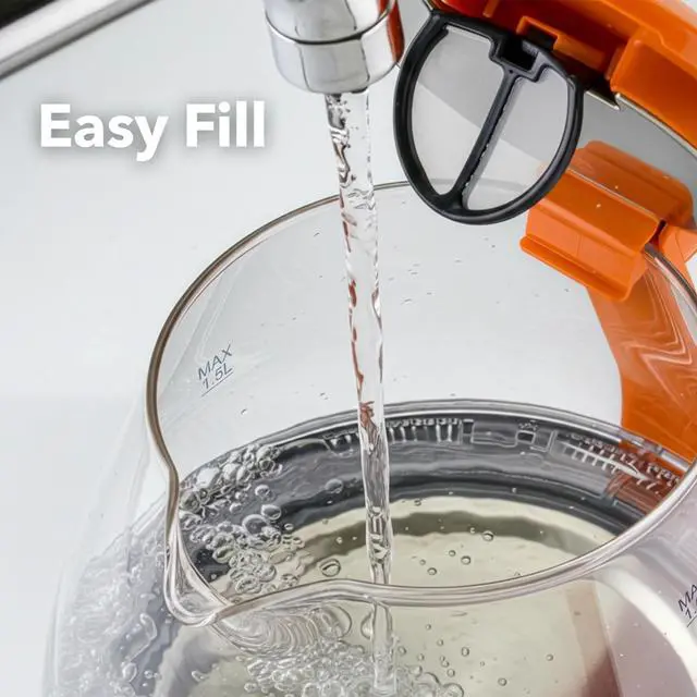 The 360° rotary base with built-in cord storage allows for easy use and tidy storage, keeping your countertop clutter-free when the electric glass kettle is not in use.