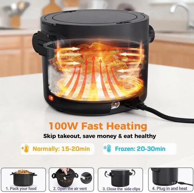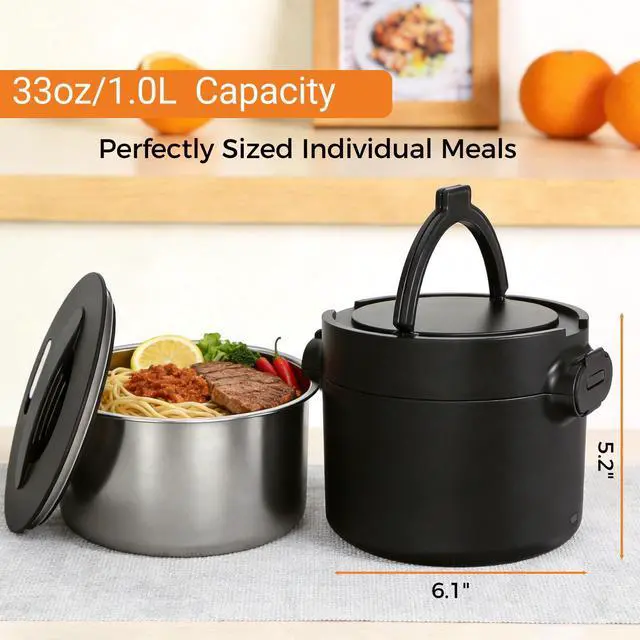 This electric lunch box offers a capacity of 33oz, which can hold 3-4 cups of solid food. It is a great choice for individual meals, making it perfect for work lunches. For larger servings, you may want to consider our 1.5L or 1.8L options .