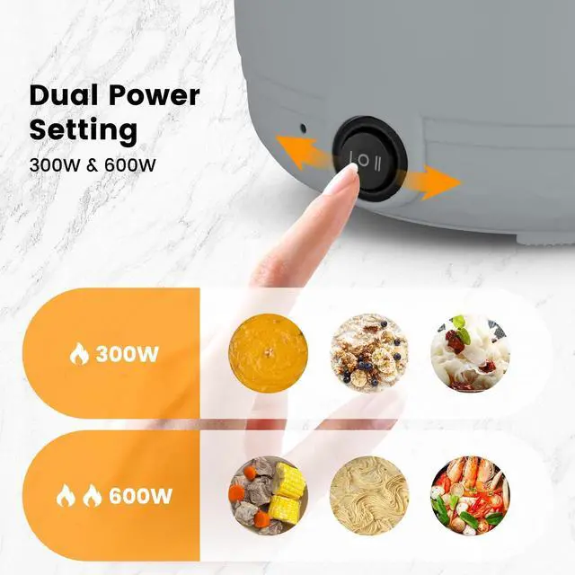 - Electric hotpot features dual power options (300W and 600W) that allow you to adjust the temperature to suit your cooking needs.