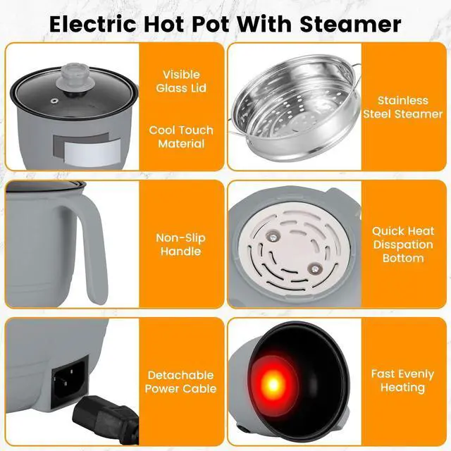 Electric pot is equipped with the round-shaped embedded heating element technology, heat food evenly.