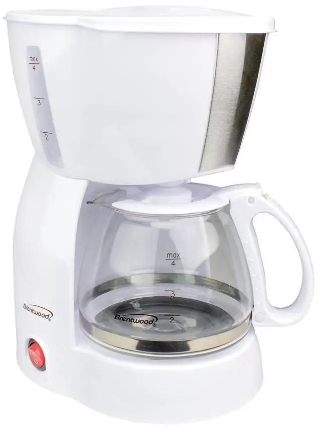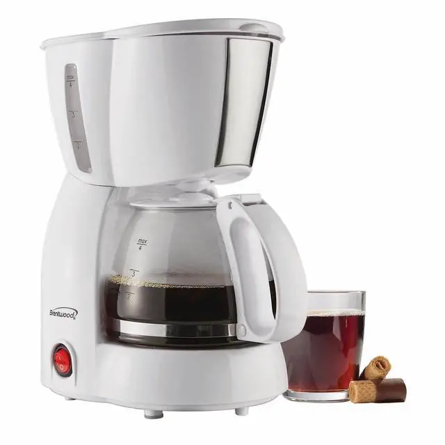 This 4 cup coffee maker is perfect for the family or a small office. It features a removable filter basket, water level indicator, on or off switch and a cool touch handle and housing. The coffee maker also has a warming plate to keep the brewed coffee hot.