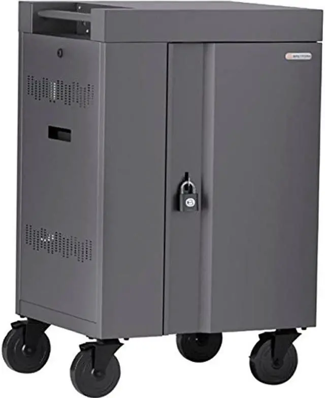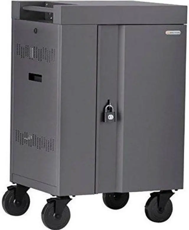 CUBE Cart Mini A no-frills budget-friendly solution for charging up to 20-devices in a compact footprint so small we call it mini. CUBE Cart Mini is available in a variety of fun vibrant colors all at an affordable price point. Each unit ships fully assembled ready for devices. A key lock located on the top of the left side panel helps secure your adapters while a reprogrammable combination padlock helps secure devices from the front during charging. Dividers provide storage and feature routing slots for power cables to keep things organized and neat. A removable left side panel provides quick and easy access to AC power outlets and adapter storage.