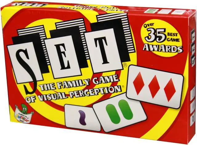 Visual Perception: This award winning card game is for one or more players. It is recommended for ages six and above. The object of the game is to identify "sets" of three cards. Each card is unique in its four features; color - red