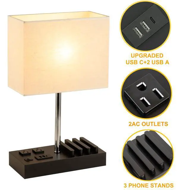 Bedside Lamps with 3 Phone Stands on the wooden base: You could put your Phone or Pad together while charging or watching movies. Effective measures to avoid the wires be twisted and keep your table neat.