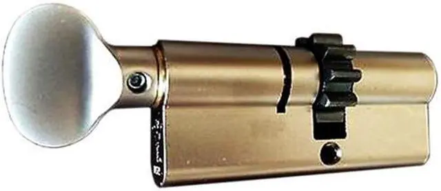 Mul-T-Lock E33G33T-05 Euro Profile Single Cylinder Brass US05 With A Gear An Interior Turn Knob And High Security 006 Keyway, specially designed with a high precision 5 pin tumbler system. The body and plug are made out of high quality solid brass, while the Cam and cogwheel are made out of steel, and the pins are made out of nickel silver and stainless steel. This cylinder is rekeyable, it is commonly used in European style mortise locks, and it is compatible with locks and lock cases using euro profile cylinders. The cylinder operates with a 360 degree rotation with the operating key or the thumbturn.