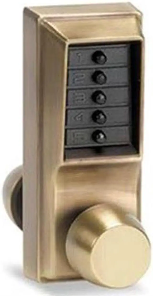 Simplex 1011-3 Brass US3 Mechanical Heavy Duty Knob Pushbutton Combination Lock, specially designed to provide exterior access by combination, while allowing free egress. This mechanical option eliminates material and labor expense of battery replacements, and it has a single access code which is programmed via the keypad without removing the lock from the door. This lock has an adjustable backset of 2-3/4" - 2-3/8", a latch length of 1/2" x 3/4" inches, and it fits wood or metal doors, 1-3/8" to 2-1/4" thick. This lock eliminates problem and costs associated with issuing, controlling, and collecting keys and cards.this locking device has a cylindrical latch with a 3-hourUL/ULC fire rating on "A" label doors. This lock is constructed of a heavy duty cylindrical lock housing with cast front housing, a unified trim plate, and fixed ADA-compliant levers.