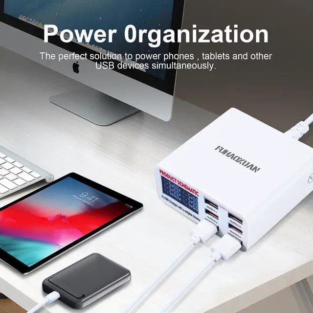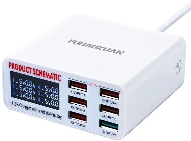 CHARGING STATION FOR MULTIPLE DEVICES: 40w 6-Ports, delivering 5USB+1QC3.0 Ports fast 2.4A charging for all your 5V devices, making it the perfect solution for households and business with multiple gadgets