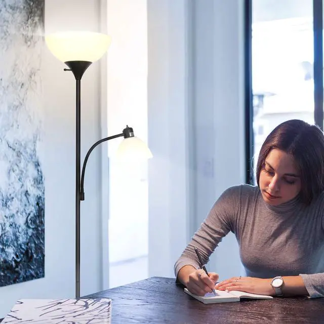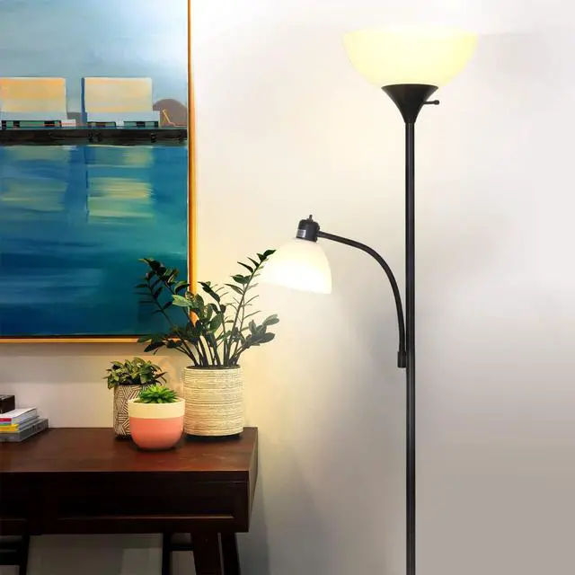 MODERN STYLE IN A DIMMABLE CORNER LAMP: This contemporary, slender lamp slides unobtrusively into narrow corners, and the base fits beneath most sofas, recliners and reading chairs. With its tall uplight pole, this lamp provides warm light in addition to bright task lighting without taking much room. It fits well with urban, mid century modern, casual, contemporary, or ultra-mod décor. Simple and easy to assemble, you’ll have it set up and lighting your space in minutes!