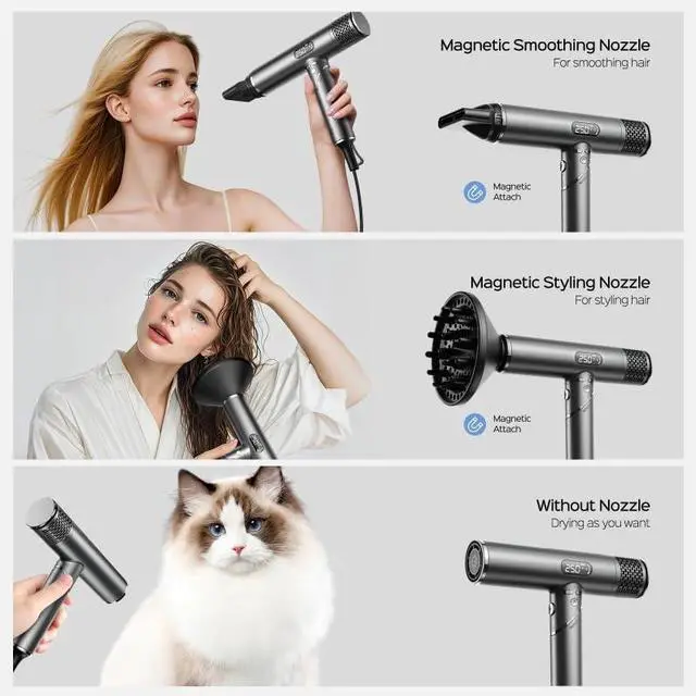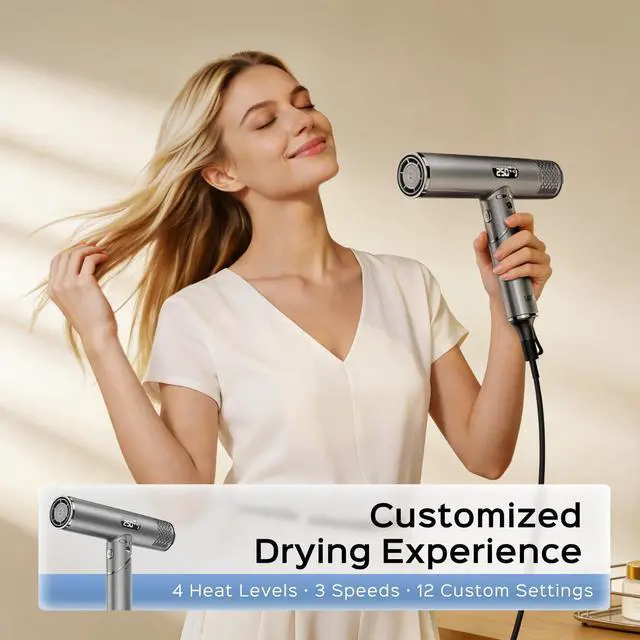 Fast Drying with Strong WindThe Lena high-speed hair dryer is equipped with a 1400-1600W motor and a 100,000 RPM high-speed brushless motor, delivering strong wind at 21m/s for quick and efficient drying. Whether at home or on the go, it ensures fast, salon-quality results, even for thick or wavy hair. Say goodbye to long waits and enjoy an efficient drying experience.
