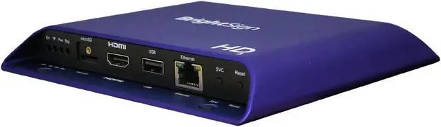 The BrightSign HD1023 media player is designed for commercial digital signage and kiosk applications. This standalone, easy-to-use gadget offers H.265 decoding, HTML5 rendering with mainstream performance and Gigabit Ethernet, and supports simultaneous playback from local, networked and streaming sources. You can wow corporate audience or retail customers with expressive and impressive images, audio and videos up to Full HD 1080p. Interactive options can be added via a USB2.0 (type C) and a Serial (3.5mm) port to fully engage your audience. GPIO (12 pins) is included for control of the media player.