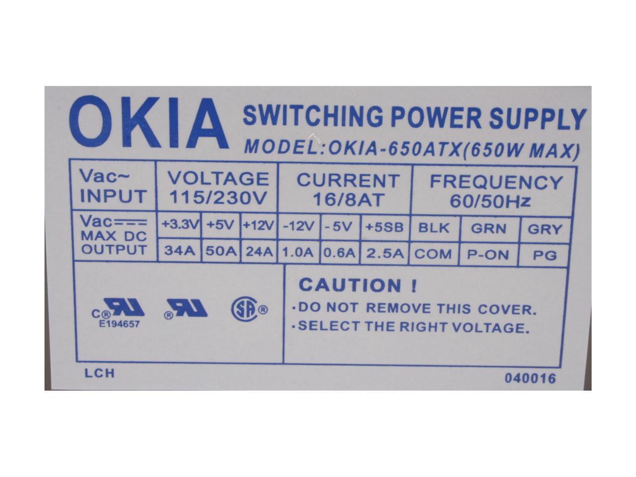 Broadway Com Corp Okia-black-650 650W ATX SLI Ready CrossFire Ready Power Supply