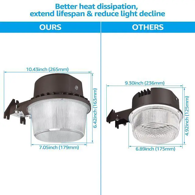 The industrial die-casted aluminum material makes this barn light great for outdoor environments. It's sturdy, has excellent heat dissipation and corrosion resistance, and extends the long service life.